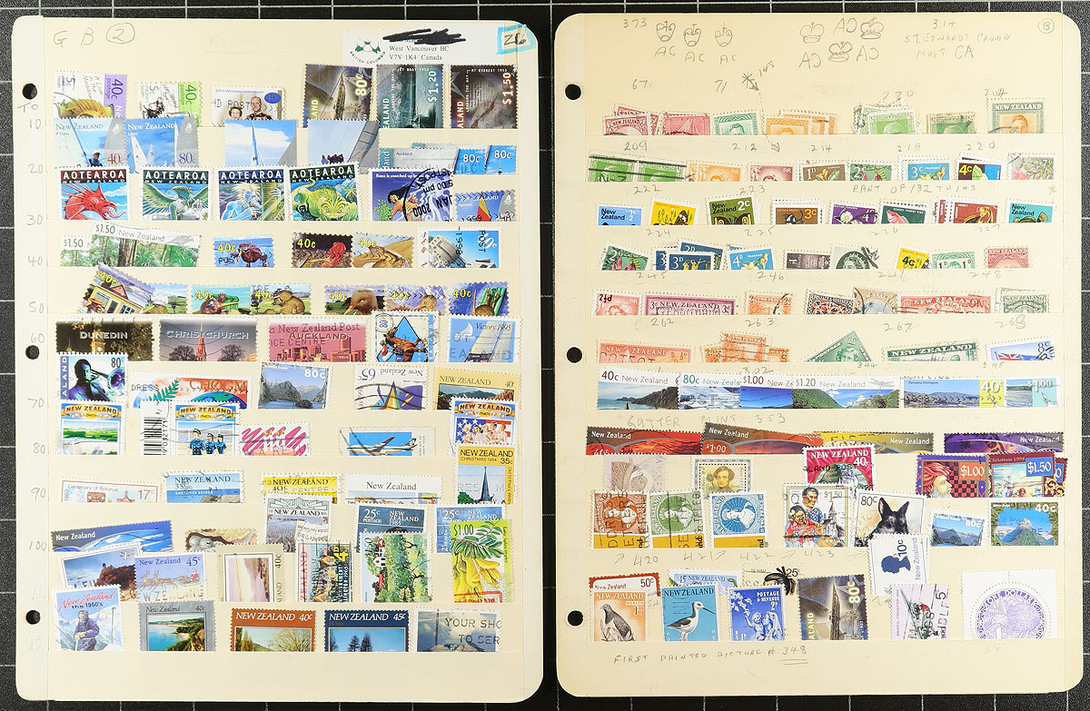 Many colonies and countries represented here. More mint than used and mostly QEII era. A seemingly random offering, we noticed some New Zealand, Hong Kong, Tonga (progressive proofs, Gandhi), Malta, Gibraltar (with some impressive face value), Antigua & Barbuda, Belize (1982 ship set), Fiji, etc. A number of souvenir sheets throughout and substantial catalogue value. The balance of a local estate. Estimate =