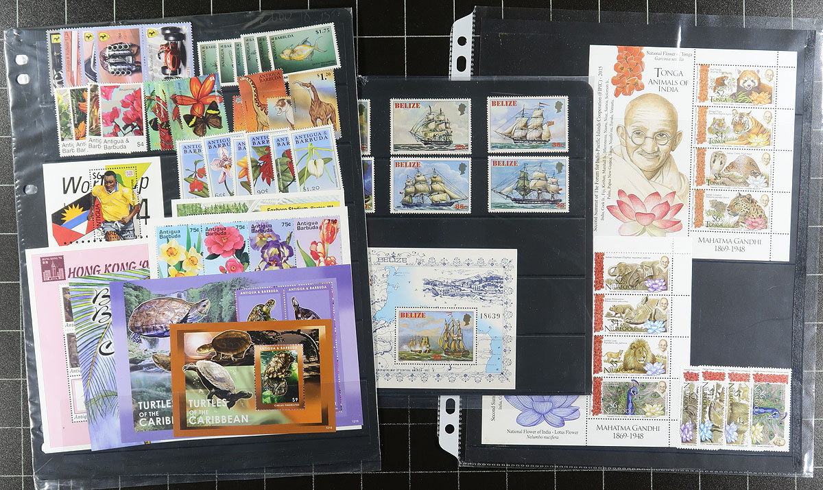 Many colonies and countries represented here. More mint than used and mostly QEII era. A seemingly random offering, we noticed some New Zealand, Hong Kong, Tonga (progressive proofs, Gandhi), Malta, Gibraltar (with some impressive face value), Antigua & Barbuda, Belize (1982 ship set), Fiji, etc. A number of souvenir sheets throughout and substantial catalogue value. The balance of a local estate. Estimate =