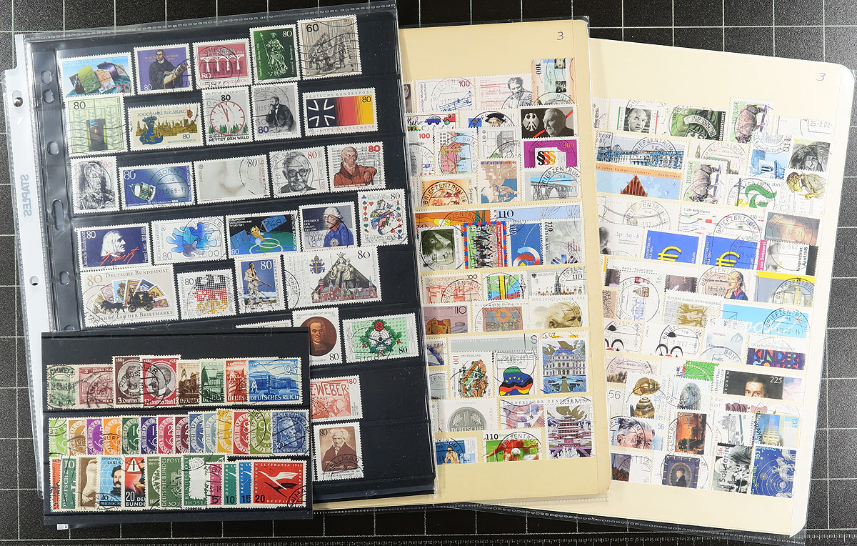 Used estate bundle #3. 1875-2018 partially overlapping selection from seven previous bidboard lots, which are still on their original pages, stockbook and album. Good coverage, lots of nice cancels. There is some modern semi-postals and a mounted group of Vending Machine stamps. The Schaubek album is 1983-1998 regular pages with 650+ different stamps (album retails over $200.00). The lot has individual stamps with catalogue values to $20.00. Estimate =