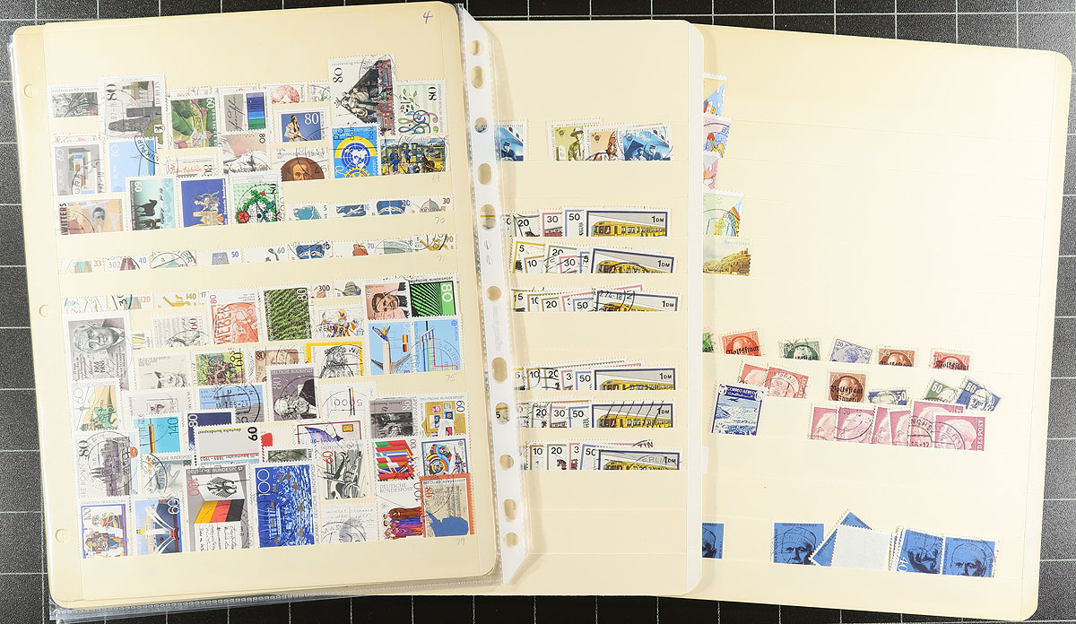 Used estate bundle #3. 1875-2018 partially overlapping selection from seven previous bidboard lots, which are still on their original pages, stockbook and album. Good coverage, lots of nice cancels. There is some modern semi-postals and a mounted group of Vending Machine stamps. The Schaubek album is 1983-1998 regular pages with 650+ different stamps (album retails over $200.00). The lot has individual stamps with catalogue values to $20.00. Estimate =