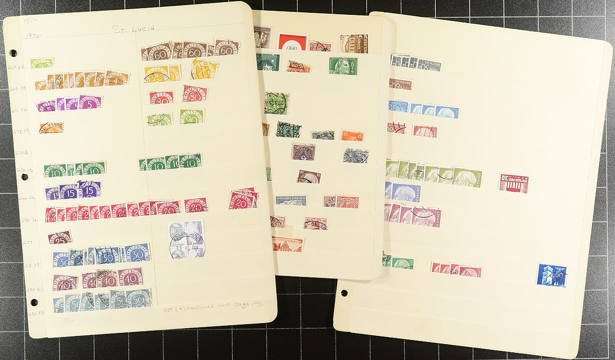 Used estate bundle #3. 1875-2018 partially overlapping selection from seven previous bidboard lots, which are still on their original pages, stockbook and album. Good coverage, lots of nice cancels. There is some modern semi-postals and a mounted group of Vending Machine stamps. The Schaubek album is 1983-1998 regular pages with 650+ different stamps (album retails over $200.00). The lot has individual stamps with catalogue values to $20.00. Estimate =