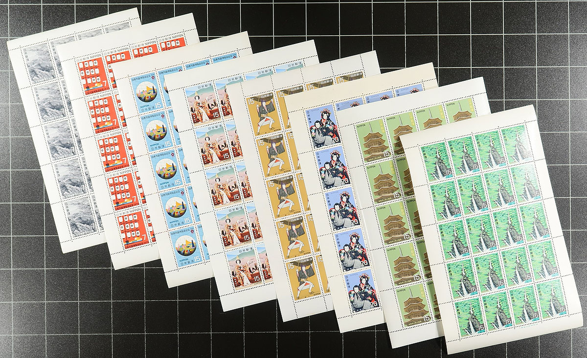 Complete mint, never hinged panes of 10-20 stamps, with issues from 1969-1971, and then 1985-1992. A popular sideline for modern Japanese collectors. These have significant face value (totals over ¥40,000) and are in nice condition. Expect some duplication. Total face value in Canadian dollars =