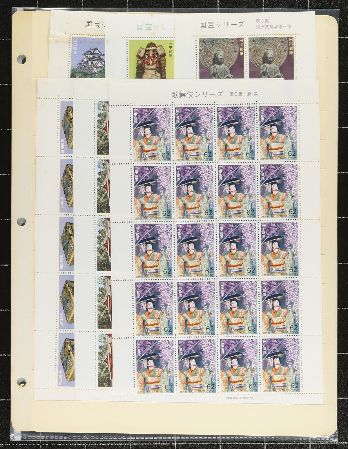 Complete mint, never hinged panes of 10-20 stamps, with issues from 1969-1971, and then 1985-1992. A popular sideline for modern Japanese collectors. These have significant face value (totals over ¥40,000) and are in nice condition. Expect some duplication. Total face value in Canadian dollars =