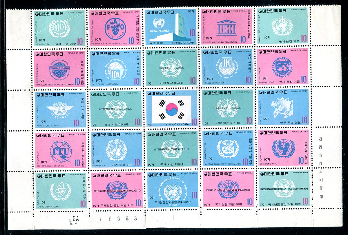 Mostly from the South, a group of four cards, starting with NH blocks of #93 (one hinged) and #94a (good light blue shade), cat US$563.00, followed by an assortment of used and mint from 1936-1961, a half pane of the 1971 UN Organizations issue (a couple with minor creasing) and a few loose items, including a CTO block of North Korea #3488-3512. A nice little group from an emerging collecting juggernaut! Estimate =