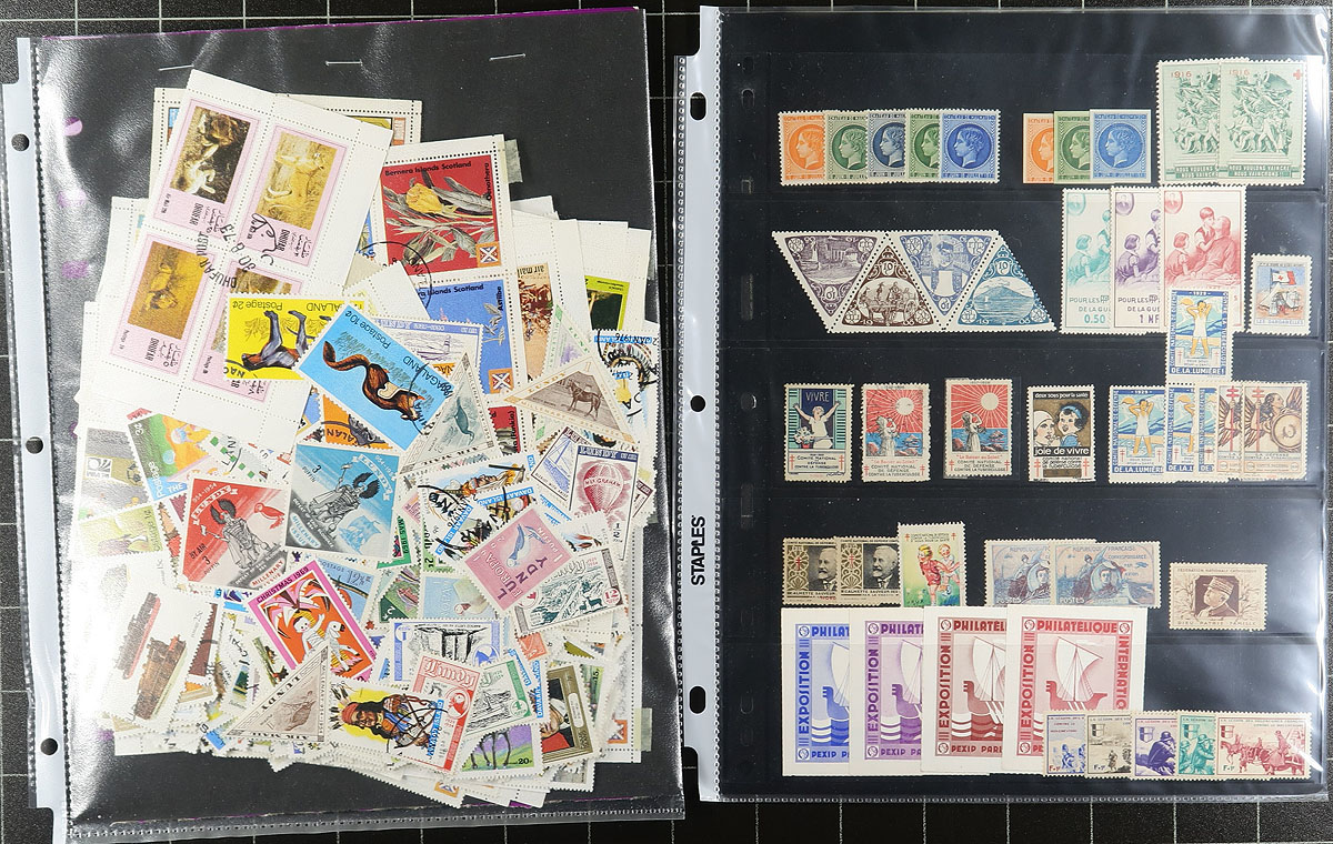 Cinderellas, labels, poster stamps, seals, or whatever you call them. A good handful of stock and album pages, plus some unmanned, from across the globe. We saw "fantasy countries", like Lundy, Sark, Herm, Lihou, Kaulbach Islands (and more!). There is a good batch of worldwide TB/Christmas labels, including some imperfs (and complete panes from Faroe Islands and Greenland). Philatelic exhibitions, UNESCO, WWI patriotic, etc. etc. A couple of thousand stamps (easily) plus some multiples. Not your usual group. Estimate =