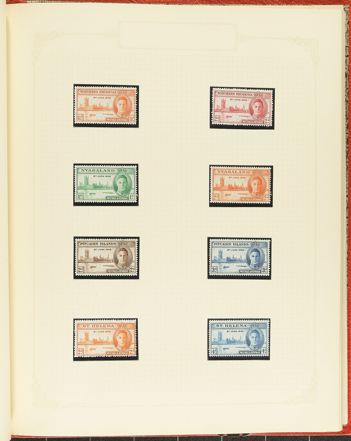 Topical heavy albums and pages in a bankers box. A binder is filled with Scouting (mostly Africa) from 2001-2002, with lots of mini-panes (probably outrageously expensive to buy new), a nice binder of Winston Churchill (1965 and 1974 issues). Mounted collection of Hungary and Greece are here, plus a Statesman and a springback have worldwide issues. There is a PRC 2000 year book. and some loose pages of miscellany. Lots of fun to have here. Estimate =