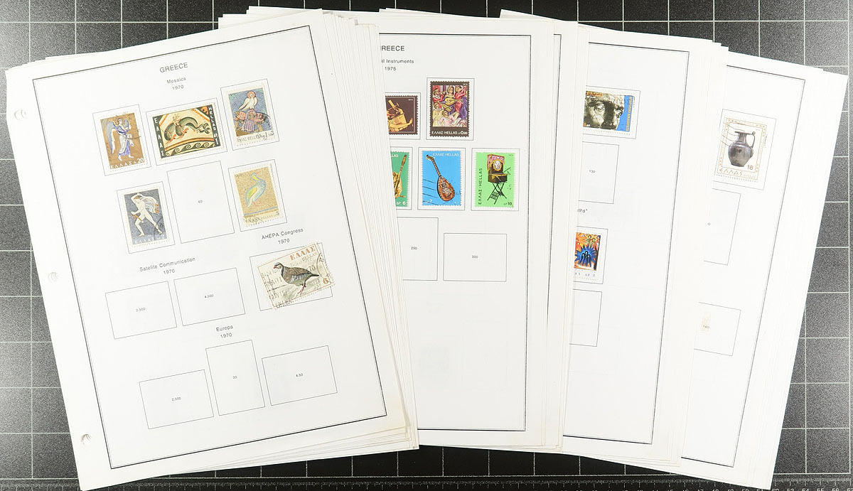 Topical heavy albums and pages in a bankers box. A binder is filled with Scouting (mostly Africa) from 2001-2002, with lots of mini-panes (probably outrageously expensive to buy new), a nice binder of Winston Churchill (1965 and 1974 issues). Mounted collection of Hungary and Greece are here, plus a Statesman and a springback have worldwide issues. There is a PRC 2000 year book. and some loose pages of miscellany. Lots of fun to have here. Estimate =