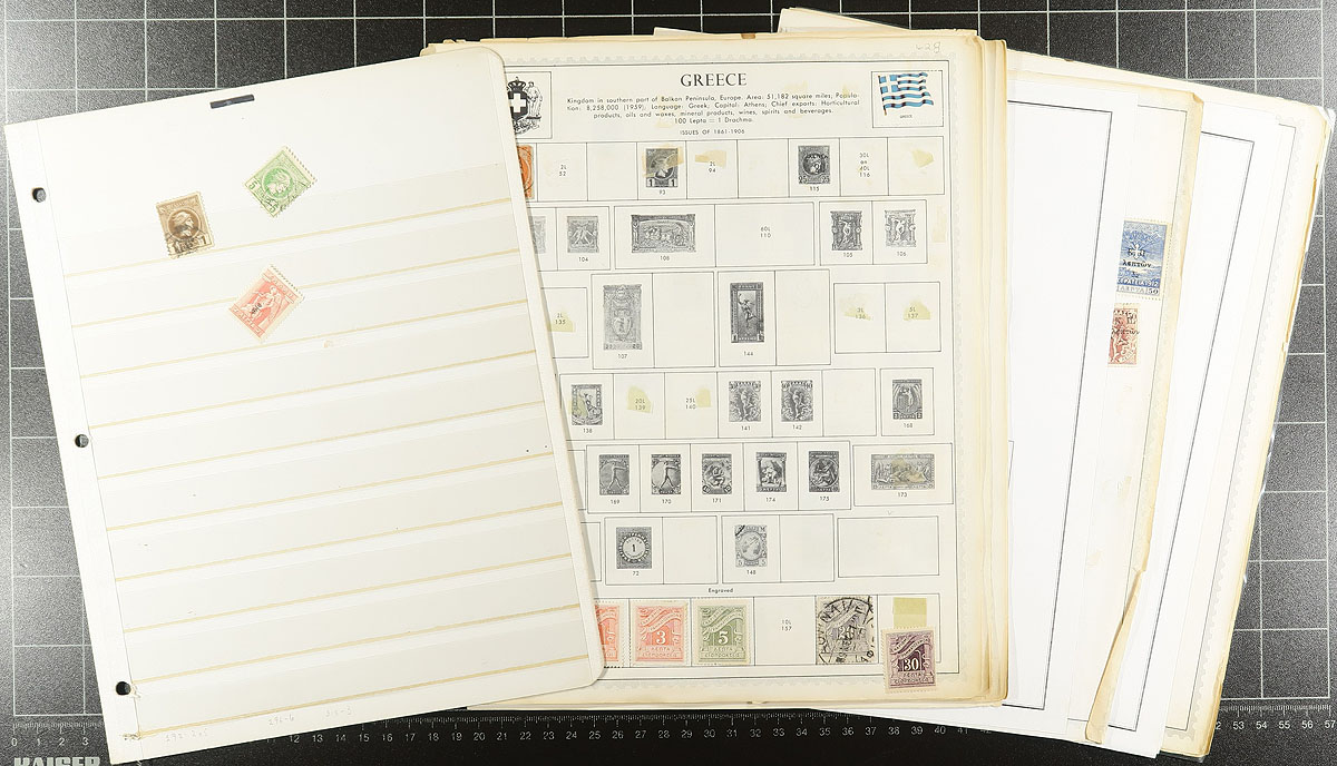 Topical heavy albums and pages in a bankers box. A binder is filled with Scouting (mostly Africa) from 2001-2002, with lots of mini-panes (probably outrageously expensive to buy new), a nice binder of Winston Churchill (1965 and 1974 issues). Mounted collection of Hungary and Greece are here, plus a Statesman and a springback have worldwide issues. There is a PRC 2000 year book. and some loose pages of miscellany. Lots of fun to have here. Estimate =