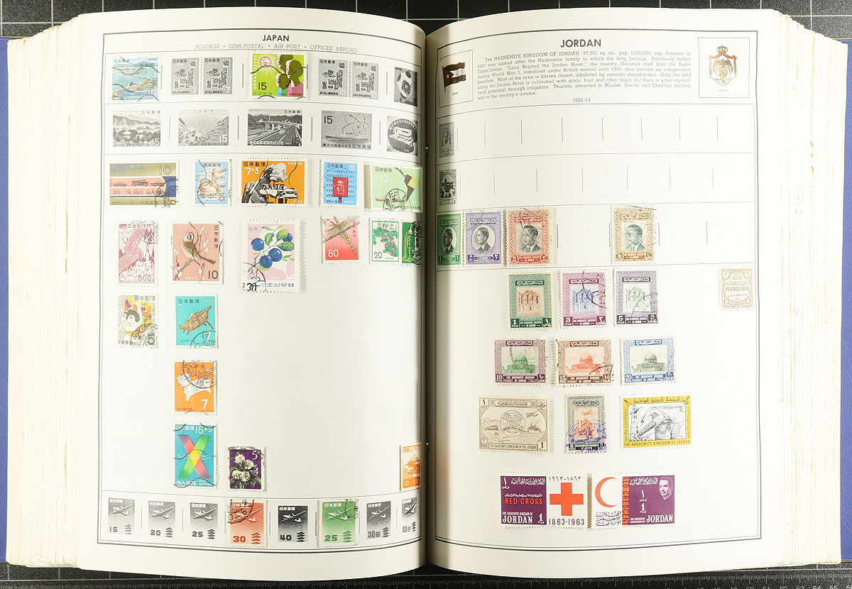 Topical heavy albums and pages in a bankers box. A binder is filled with Scouting (mostly Africa) from 2001-2002, with lots of mini-panes (probably outrageously expensive to buy new), a nice binder of Winston Churchill (1965 and 1974 issues). Mounted collection of Hungary and Greece are here, plus a Statesman and a springback have worldwide issues. There is a PRC 2000 year book. and some loose pages of miscellany. Lots of fun to have here. Estimate =