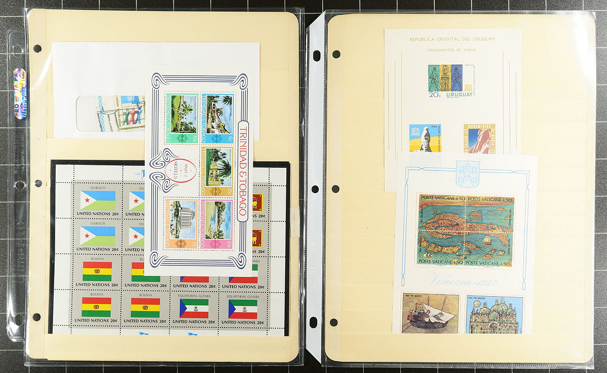 Souvenir Sheet Lovers (Part 1): This collector bought souvenir sheets from almost everywhere and put them on stockpages in page protectors. Mint (mostly never hinged) and a few used. Some were individual lots on local bidboards. Some are in window envelopes (and some of these have multiple sheets that we can’t see!). No Canada, USA or Western Europe, but everywhere else is here, with many great topicals. No organization, so no two pages are related. Fills a 2.5" binder. We note a group of mint Korean souvenir sheets and some Romanian 1940s souvenir sheet, these two alone catalogue US$400.00 plus lots of $5-$20 items, with a few stamps when they are part of the set. Estimated =