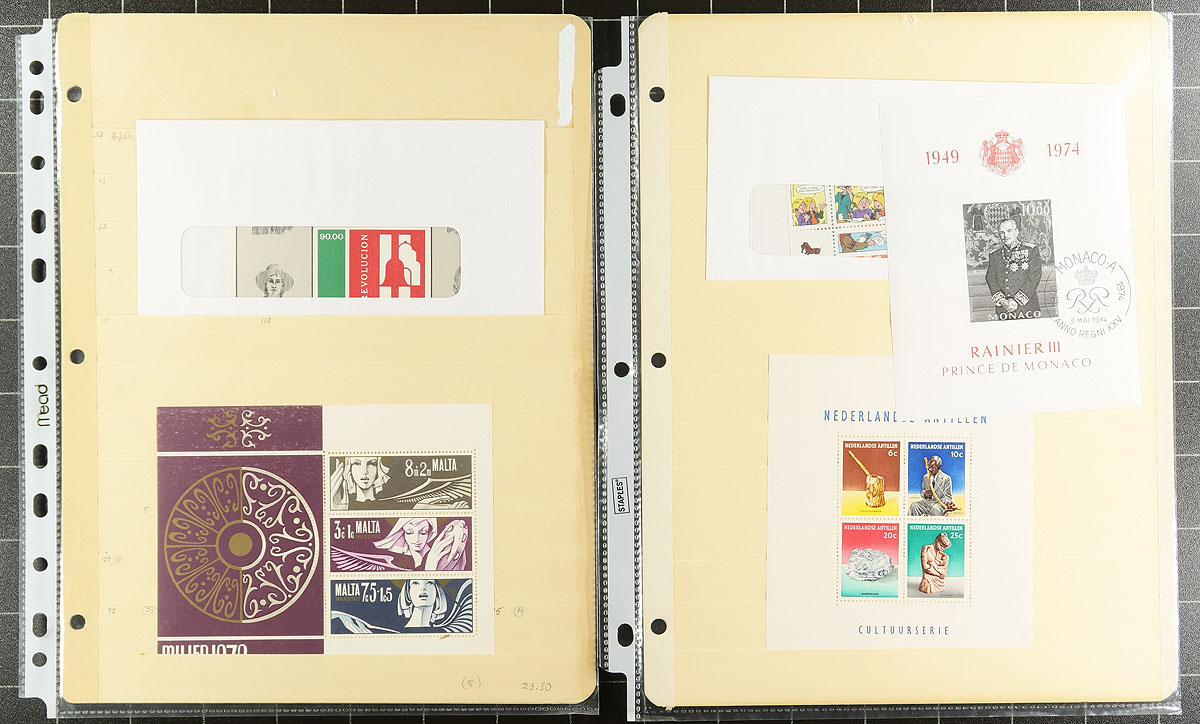 Souvenir Sheet Lovers (Part 1): This collector bought souvenir sheets from almost everywhere and put them on stockpages in page protectors. Mint (mostly never hinged) and a few used. Some were individual lots on local bidboards. Some are in window envelopes (and some of these have multiple sheets that we can’t see!). No Canada, USA or Western Europe, but everywhere else is here, with many great topicals. No organization, so no two pages are related. Fills a 2.5" binder. We note a group of mint Korean souvenir sheets and some Romanian 1940s souvenir sheet, these two alone catalogue US$400.00 plus lots of $5-$20 items, with a few stamps when they are part of the set. Estimated =