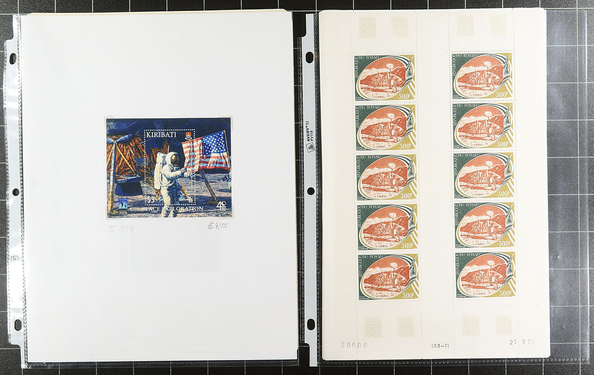 Souvenir Sheet Lovers (Part 2): This collector bought souvenir sheets from almost everywhere and put them on stockpages in page protectors. Mint (mostly never hinged) and a few used. Some were individual lots on local bidboards. Some are in window envelopes (and some of these have multiple sheets that we can’t see!). No Canada, USA or Western Europe, but everywhere else is here, with many great topicals. No organization, so no two pages are related. Fills a 2.5" binder. We note Brazil 1983 International Stamp Show, Chad 1977 Viking Spaceship (#C222 sheetlets), a couple of 1999 Georgia Europa panes, which alone catalogue almost US$500.00 plus lots of $5-$20 items, with a few stamps when they are part of the set. Estimate =
