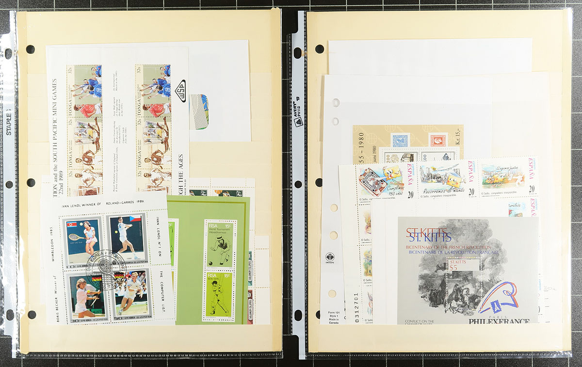 Souvenir Sheet Lovers (Part 2): This collector bought souvenir sheets from almost everywhere and put them on stockpages in page protectors. Mint (mostly never hinged) and a few used. Some were individual lots on local bidboards. Some are in window envelopes (and some of these have multiple sheets that we can’t see!). No Canada, USA or Western Europe, but everywhere else is here, with many great topicals. No organization, so no two pages are related. Fills a 2.5" binder. We note Brazil 1983 International Stamp Show, Chad 1977 Viking Spaceship (#C222 sheetlets), a couple of 1999 Georgia Europa panes, which alone catalogue almost US$500.00 plus lots of $5-$20 items, with a few stamps when they are part of the set. Estimate =