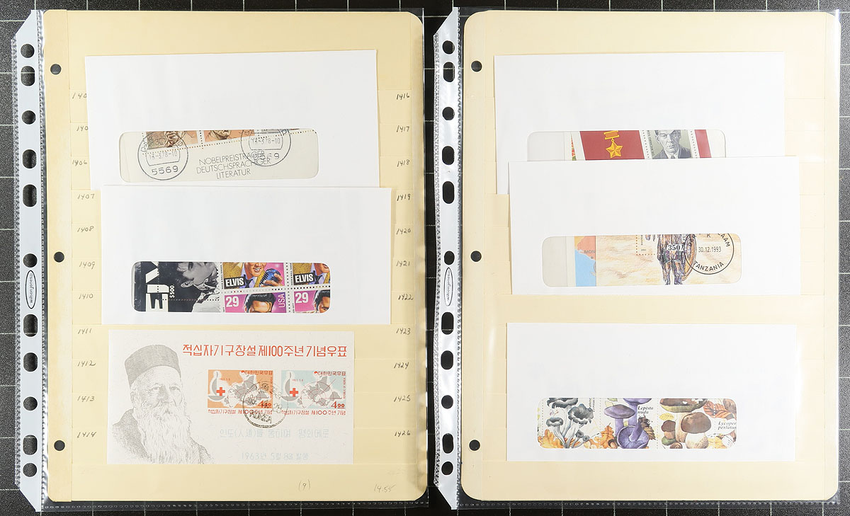 Souvenir Sheet Lovers (Part 3): This collector bought souvenir sheets from almost everywhere and put them on stockpages in page protectors. Mint (mostly never hinged) and a few used. Some were individual lots on local bidboards. Some are in window envelopes (and some of these have multiple sheets that we can’t see!). No Canada, USA or Western Europe, but everywhere else is here, with many great topicals. No organization, so no two pages are related. Fills a 2.5" binder. We note the "Monarchs of the Millennium" series plus lots of $5-$20 items, with a few stamps when they are part of the set. Estimate =