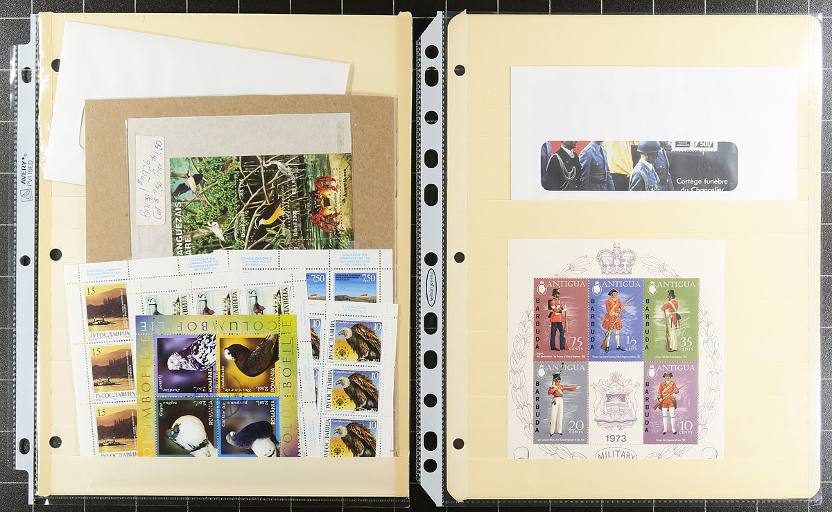 Souvenir Sheet Lovers (Part 3): This collector bought souvenir sheets from almost everywhere and put them on stockpages in page protectors. Mint (mostly never hinged) and a few used. Some were individual lots on local bidboards. Some are in window envelopes (and some of these have multiple sheets that we can’t see!). No Canada, USA or Western Europe, but everywhere else is here, with many great topicals. No organization, so no two pages are related. Fills a 2.5" binder. We note the "Monarchs of the Millennium" series plus lots of $5-$20 items, with a few stamps when they are part of the set. Estimate =