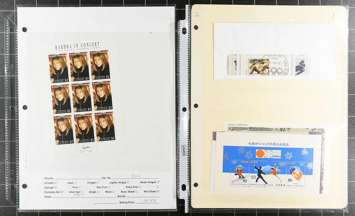 Souvenir Sheet Lovers (Part 3): This collector bought souvenir sheets from almost everywhere and put them on stockpages in page protectors. Mint (mostly never hinged) and a few used. Some were individual lots on local bidboards. Some are in window envelopes (and some of these have multiple sheets that we can’t see!). No Canada, USA or Western Europe, but everywhere else is here, with many great topicals. No organization, so no two pages are related. Fills a 2.5" binder. We note the "Monarchs of the Millennium" series plus lots of $5-$20 items, with a few stamps when they are part of the set. Estimate =