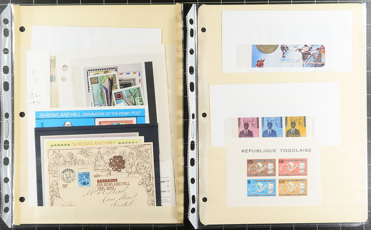 Souvenir Sheet Lovers (Part 4): This collector bought souvenir sheets from almost everywhere and put them on stockpages in page protectors. Mint (mostly never hinged) and a few used. Some were individual lots on local bidboards. Some are in window envelopes (and some of these have multiple sheets that we can’t see!). No Canada, USA or Western Europe, but everywhere else is here, with many great topicals. No organization, so no two pages are related. Fills a 2.5" binder. We note a nice batch of used Korea plus lots of $5-$20 items, with a few stamps when they are part of the set. Estimate =