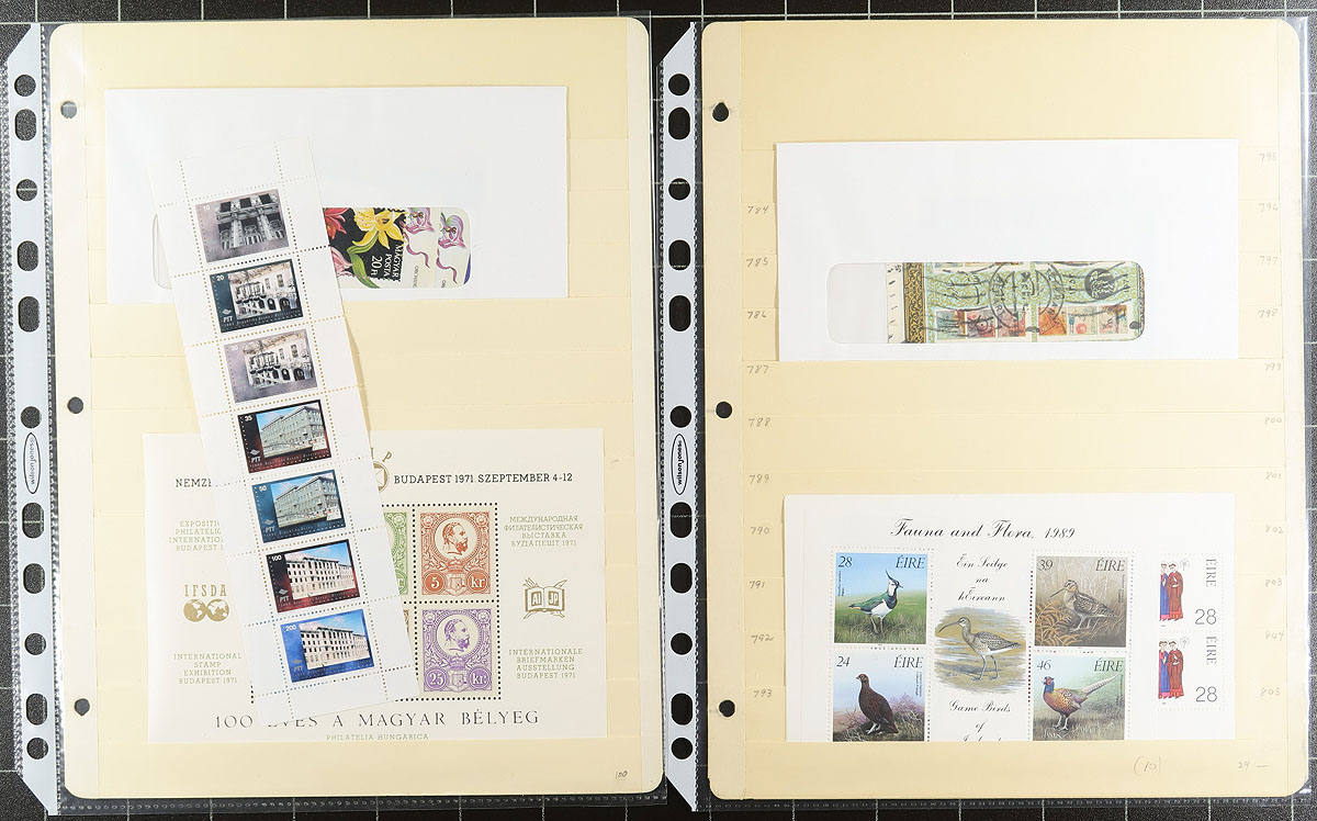 Souvenir Sheet Lovers (Part 4): This collector bought souvenir sheets from almost everywhere and put them on stockpages in page protectors. Mint (mostly never hinged) and a few used. Some were individual lots on local bidboards. Some are in window envelopes (and some of these have multiple sheets that we can’t see!). No Canada, USA or Western Europe, but everywhere else is here, with many great topicals. No organization, so no two pages are related. Fills a 2.5" binder. We note a nice batch of used Korea plus lots of $5-$20 items, with a few stamps when they are part of the set. Estimate =