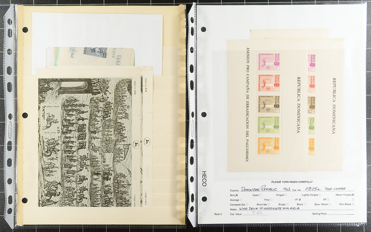 Souvenir Sheet Lovers (Part 4): This collector bought souvenir sheets from almost everywhere and put them on stockpages in page protectors. Mint (mostly never hinged) and a few used. Some were individual lots on local bidboards. Some are in window envelopes (and some of these have multiple sheets that we can’t see!). No Canada, USA or Western Europe, but everywhere else is here, with many great topicals. No organization, so no two pages are related. Fills a 2.5" binder. We note a nice batch of used Korea plus lots of $5-$20 items, with a few stamps when they are part of the set. Estimate =