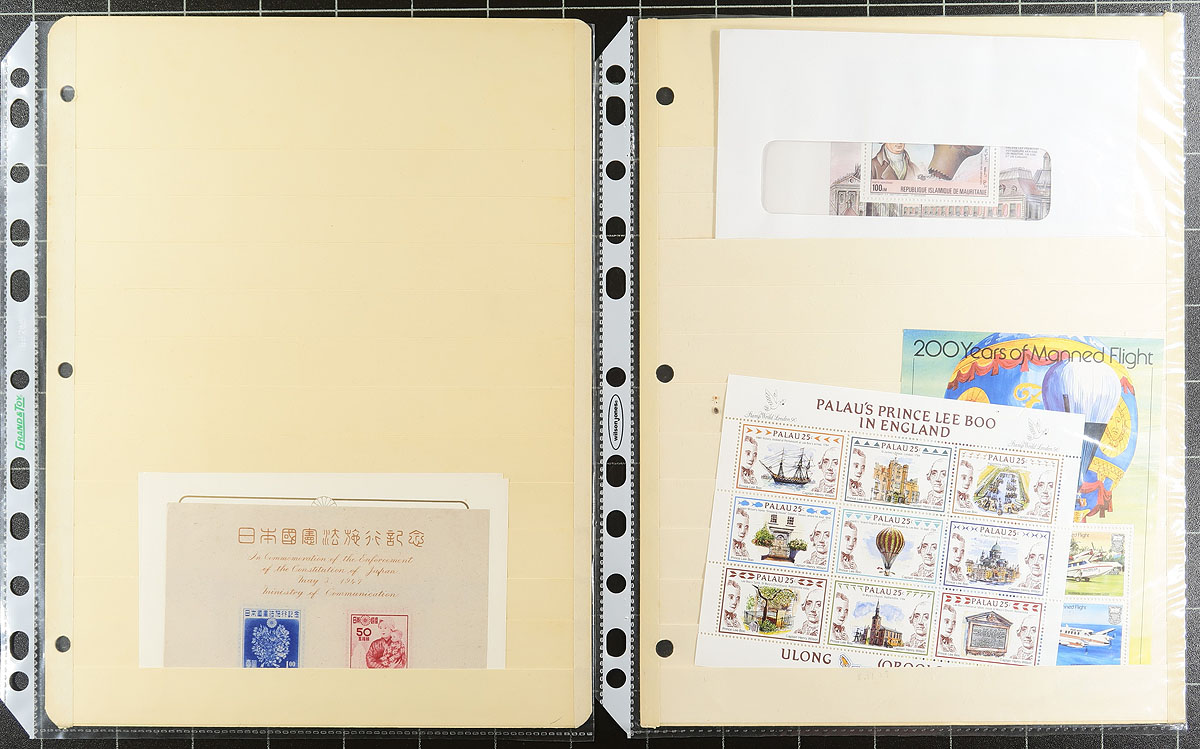 Souvenir Sheet Lovers (Part 4): This collector bought souvenir sheets from almost everywhere and put them on stockpages in page protectors. Mint (mostly never hinged) and a few used. Some were individual lots on local bidboards. Some are in window envelopes (and some of these have multiple sheets that we can’t see!). No Canada, USA or Western Europe, but everywhere else is here, with many great topicals. No organization, so no two pages are related. Fills a 2.5" binder. We note a nice batch of used Korea plus lots of $5-$20 items, with a few stamps when they are part of the set. Estimate =