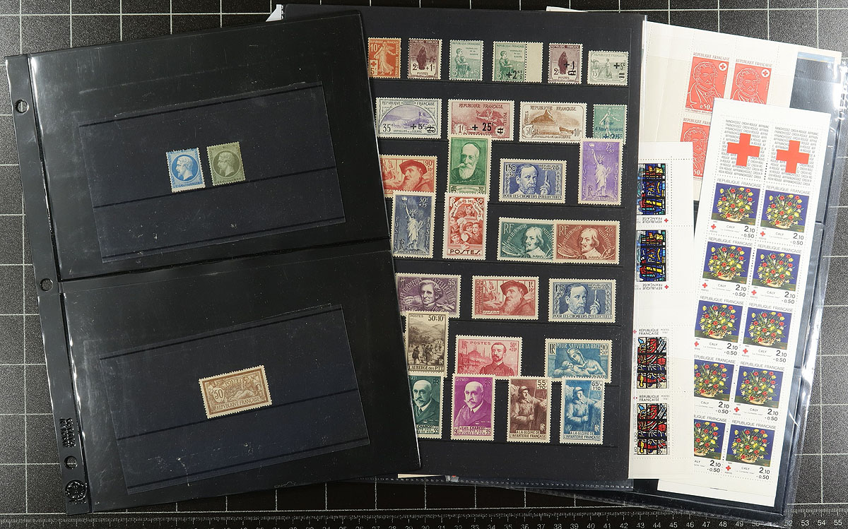 Mint accumulation on stock pages, with a few early regular issues, including the Paris Olympics (one no gum, rest heavily hinged). The strength is in the "back of the book" with earlier semi-postal singles and sets and later complete Red Cross booklet panes. Mixed condition here, and lots of catalogue value. The balance of an estate. Estimate =
