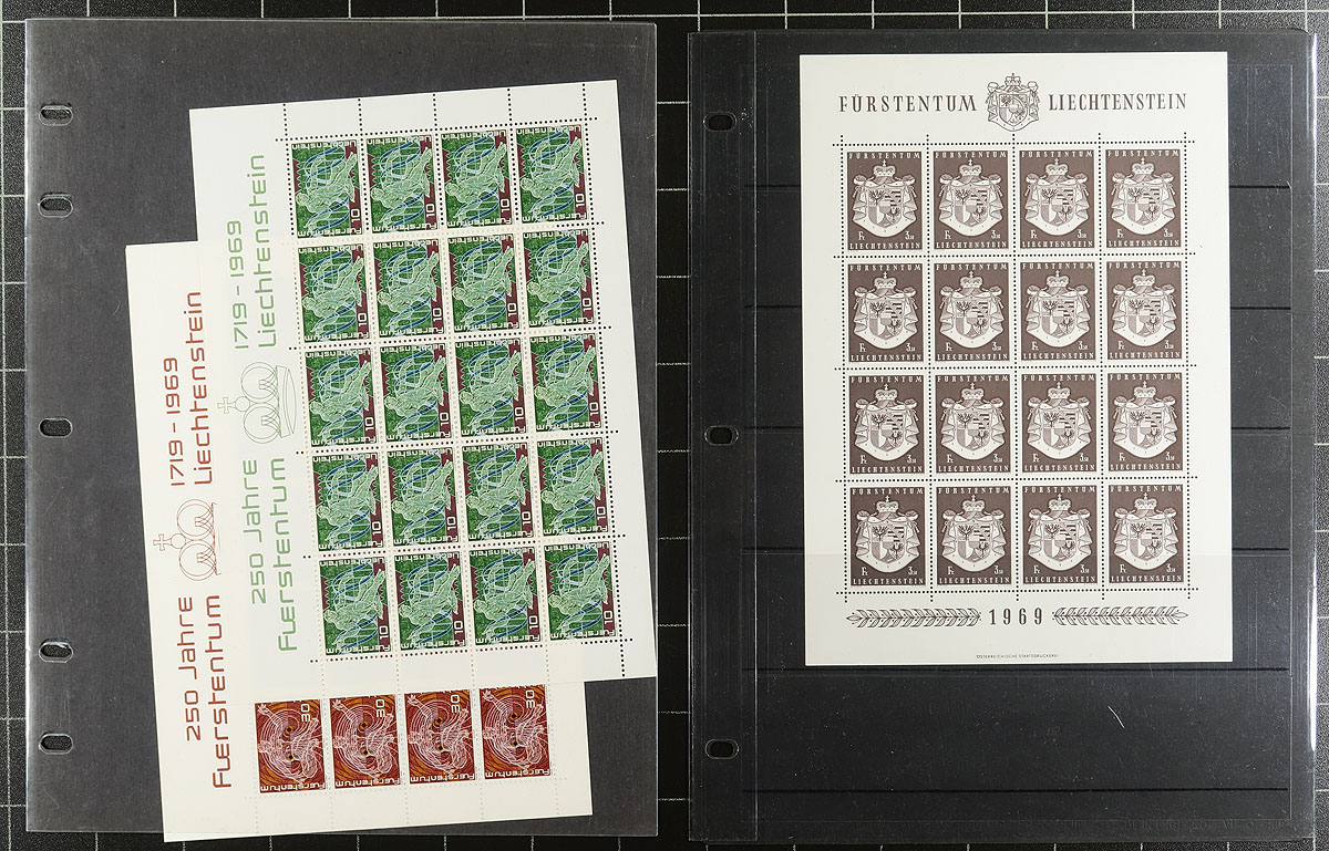 A mix of complete panes of 20 and a few pages of singles 1969-2009, all mint never hinged. Enormous original face value (for modern Liechtenstein, the face value is close to the US catalogue value). Some topical appeal here and didn’t notice any duplication. Owner’s 2022 Scott US$726.40 =