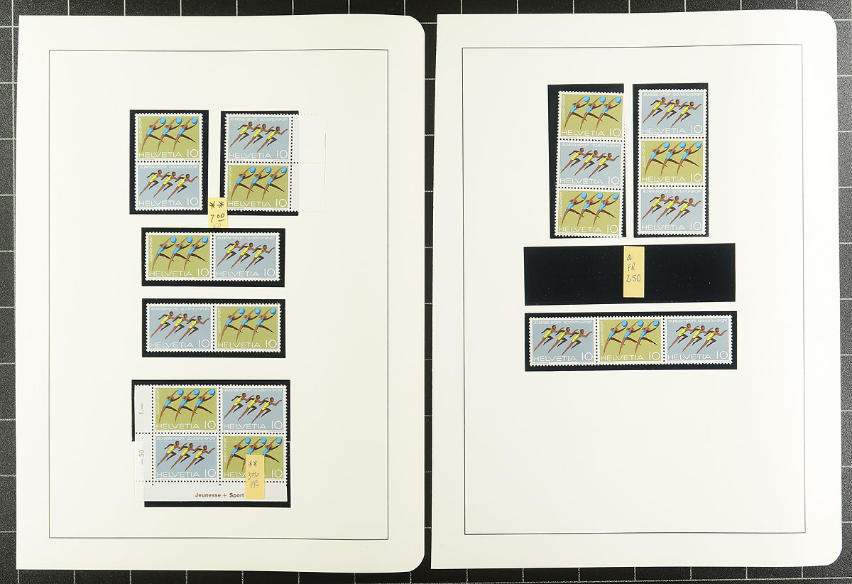 Accumulation of assorted mint Swiss issues from the 1890's to about 1980. Has better, such as two copies of the 1 franc high value of the 1932 Disarmament Conference (one is never hinged), some Standing Helvetia, 1900 UPU, a good range of 1966-1980 on pages and a bit of back of the book. As this is from several sources, expect a bit of duplication. A quick look indicates that the condition is quite good. Owner’s recent Scott catalogue value is over US$700.00. Estimate =