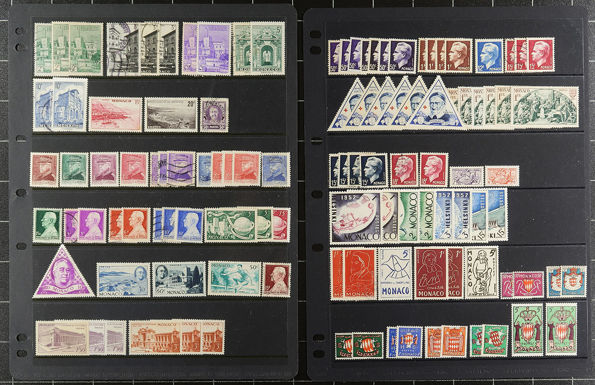 A mess of Monaco, with some early used such as #3, #4, #6, #15, #20, #27, #128, #129, with a mix of mid-century mint and used and then ending with five pages’ worth of mint, never hinged panes of 10 (minor duplication). A couple of faults in the earlier issues with the modern issues being near perfect. Owner’s 2023 Scott US$872.65 =