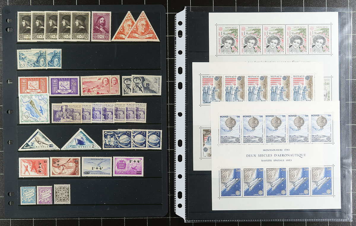 A mess of Monaco, with some early used such as #3, #4, #6, #15, #20, #27, #128, #129, with a mix of mid-century mint and used and then ending with five pages’ worth of mint, never hinged panes of 10 (minor duplication). A couple of faults in the earlier issues with the modern issues being near perfect. Owner’s 2023 Scott US$872.65 =