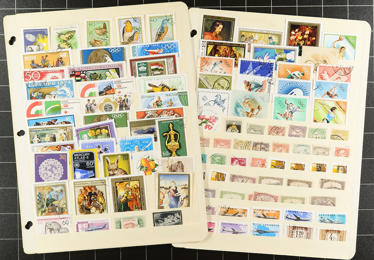 Eastern European bundle, mostly an assortment of former bidboard lots, with individual items or countries and a few multi-country groups on stockpages. In no particular order, there is a block of 21 of Serbia #51b, a couple of pages of Albania, late 1990's Europa sheetlets from Armenia and Azerbaijan, as well as selections from Albania, Bosnia, Bulgaria, Czechoslovakia, Hungary, Poland, Russia, Ukraine, Estonia, Latvia, Lithuania, Romania, and more. The group concludes with a mint sheet file with mint panes of Croatia floral "triangles", not counted in the owner’s catalogue value. Owner's 2022 Scott catalogue value US$1208.05 =
