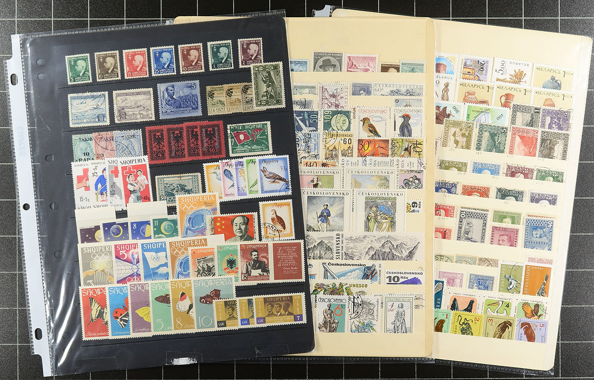 Eastern European bundle, mostly an assortment of former bidboard lots, with individual items or countries and a few multi-country groups on stockpages. In no particular order, there is a block of 21 of Serbia #51b, a couple of pages of Albania, late 1990's Europa sheetlets from Armenia and Azerbaijan, as well as selections from Albania, Bosnia, Bulgaria, Czechoslovakia, Hungary, Poland, Russia, Ukraine, Estonia, Latvia, Lithuania, Romania, and more. The group concludes with a mint sheet file with mint panes of Croatia floral "triangles", not counted in the owner’s catalogue value. Owner's 2022 Scott catalogue value US$1208.05 =