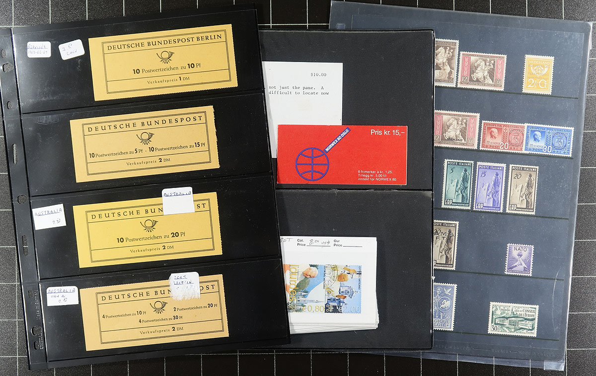 Mostly Western European bundle, an assortment of former bidboard lots, with scattered multi-country groups on stock or album pages. We noted some booklets (Germany), with mint and (more) used from at least a dozen other countries. Perfect for the collector, club or person looking to break it up for sale. Estimate =