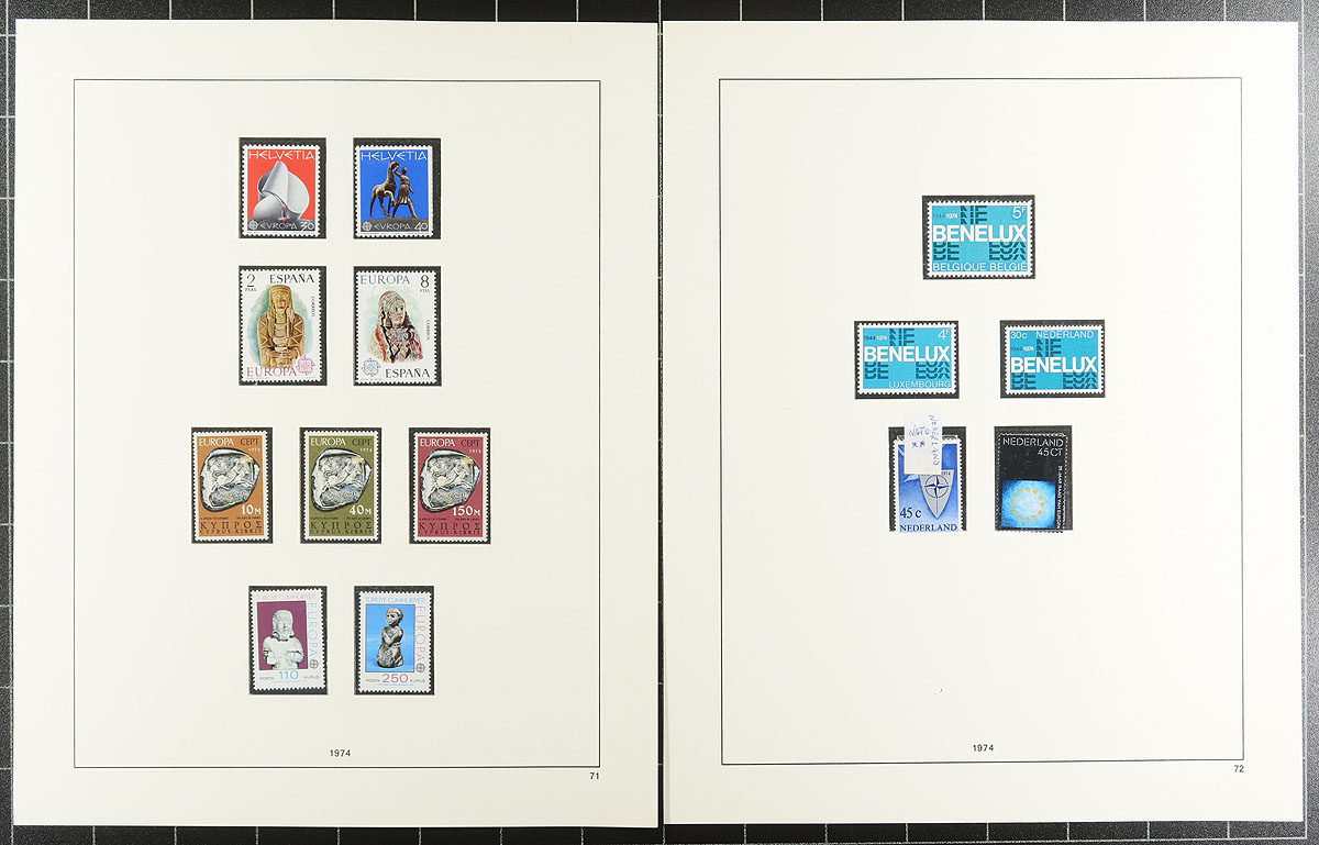 "Europa" issues, an assortment from 1956, 1965, 1973, 1974 and 1983. Most are never hinged, from a range of Western European states, which catalogue about US$900.00. A couple of bonus items are the key Andorra (Spain) 1972 issue, with some minor gum thins plus the hingeless "SAFE" pages for the 1973-74. A popular omnibus and common design issue. Estimate =