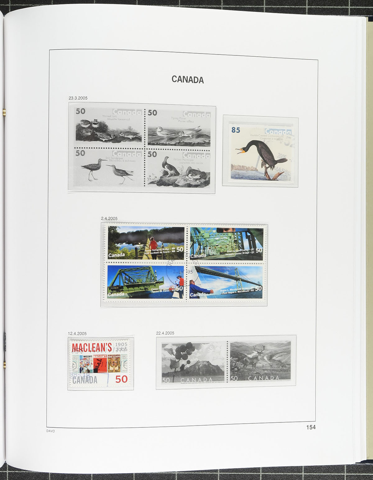 Modern Deluxe Album Duo (with Stamps). Two high quality "as new" Hingeless Canada albums with matching slipcases. The first is a DAVO album (Volume IV) covering the period 2001 to 2006 containing 168 MNH and used stamps and 17 souvenir sheets. The second album is a Stanley Gibbons Volume V (identical to DAVO) covering the period 2007 to 2012, sparsely populated with 7 stamps and 7 souvenir sheets. These albums retail new for over $700.00! Here's your chance to get these popular albums, partially pre-filled with a substantial quantity of material. The other volumes of these albums are readily available from most dealers. Estimate =