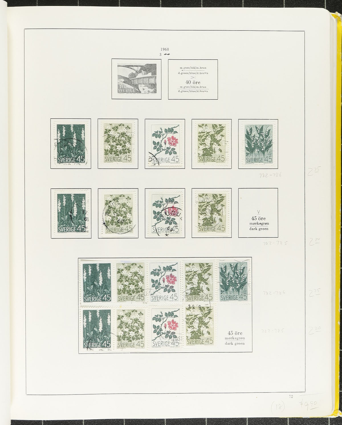 Used collection of 1858 to 1988 issues in a "Stender" Scandinavian specialty album, 2083 stamps and 4 S/S hinged to pages. Better items including #18, 20, 26 and J1. Owner's older 2018 Scott US$1581.80 =