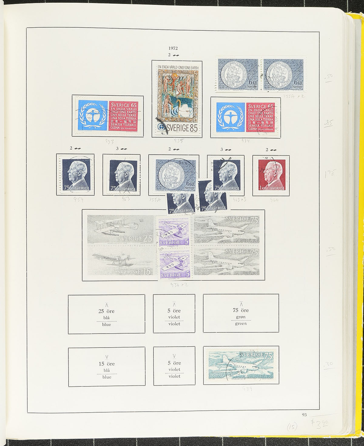 Used collection of 1858 to 1988 issues in a "Stender" Scandinavian specialty album, 2083 stamps and 4 S/S hinged to pages. Better items including #18, 20, 26 and J1. Owner's older 2018 Scott US$1581.80 =