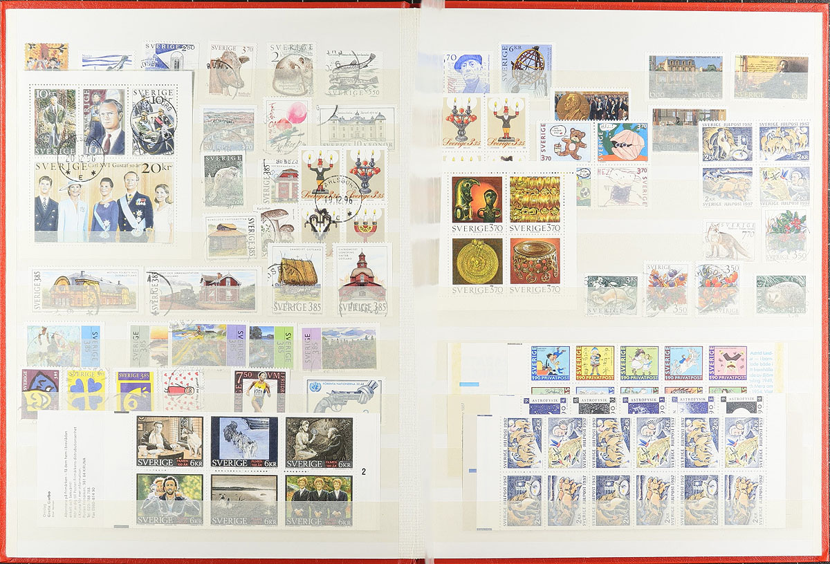 A collector’s modern mint and used holding in 4x 16 page stockbooks and a binder. There is a collection of mint 1970's stamps and complete booklets, with three of the stockbooks having a mix of mint and used stamp from the 1980's-1990's (but with scattered earlier stamps back to the 19th century) including lots of mint booklets and souvenir sheets. The last stock book is filled with 1950's-8190's used coil pairs. A bit disorganized, but good condition and some light to moderate duplication. Estimate =