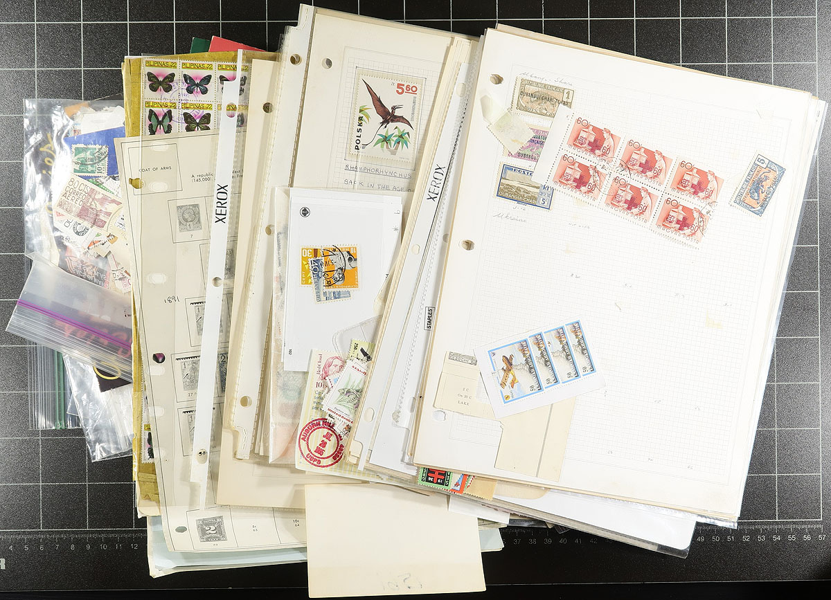 Bankers box of Worldwide delight. Almost every nook and cranny of this bankers box is filled. There is a 48-page stockbook with a used worldwide accumulation (probably a dozen countries including Canada, Australia, Germany with a better set of British Antarctica #39-42 etc.). There are at least three large groups of worldwide souvenir sheets (some on collector panels). A handful of material from philatelic shows, A New York World Fair topical collection, plus some used Channel Islands, baggies and envelope-sorted duplicates. Estimate =