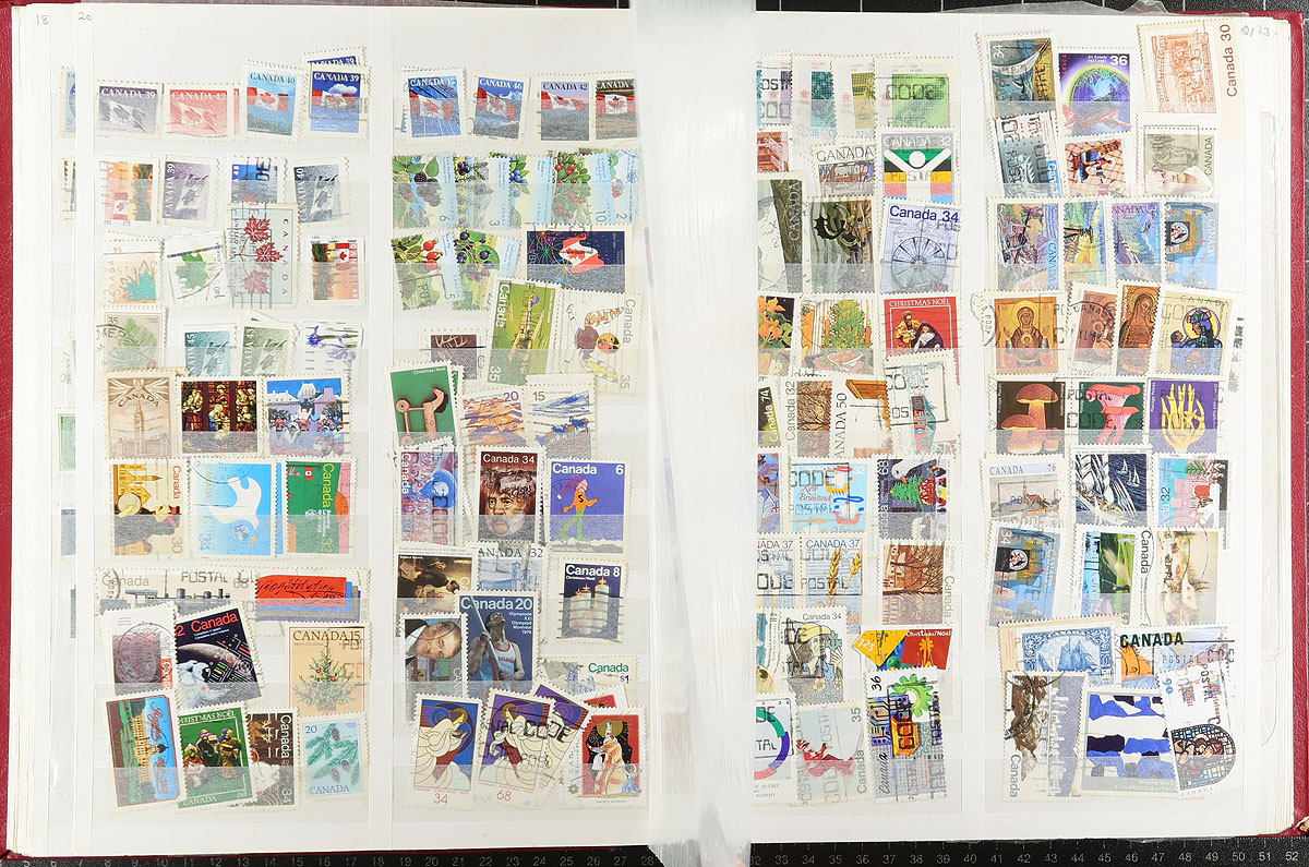 Bankers box of Worldwide delight. Almost every nook and cranny of this bankers box is filled. There is a 48-page stockbook with a used worldwide accumulation (probably a dozen countries including Canada, Australia, Germany with a better set of British Antarctica #39-42 etc.). There are at least three large groups of worldwide souvenir sheets (some on collector panels). A handful of material from philatelic shows, A New York World Fair topical collection, plus some used Channel Islands, baggies and envelope-sorted duplicates. Estimate =