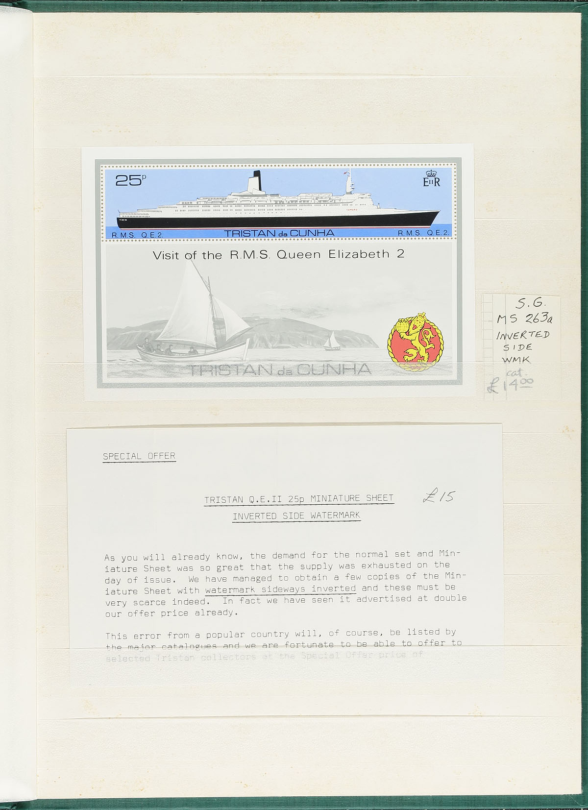 Estate balance #1. A bit from many different colonies, with strength from the Caribbean and Pacific. In order of appearance, there are some souvenir sheets, South Georgia, Tonga, Papua, 1953 Coronation, Turks and Caicos, Virgin Islands, Trinidad and Tobago, Barbuda (1993-1988), topicals, Falkland Islands, GB-Offices, Christmas Island, finishing with a stockbook of mint QEII with minor (but mostly SG-listed) varieties (e.g. inverted watermark). Estimate =