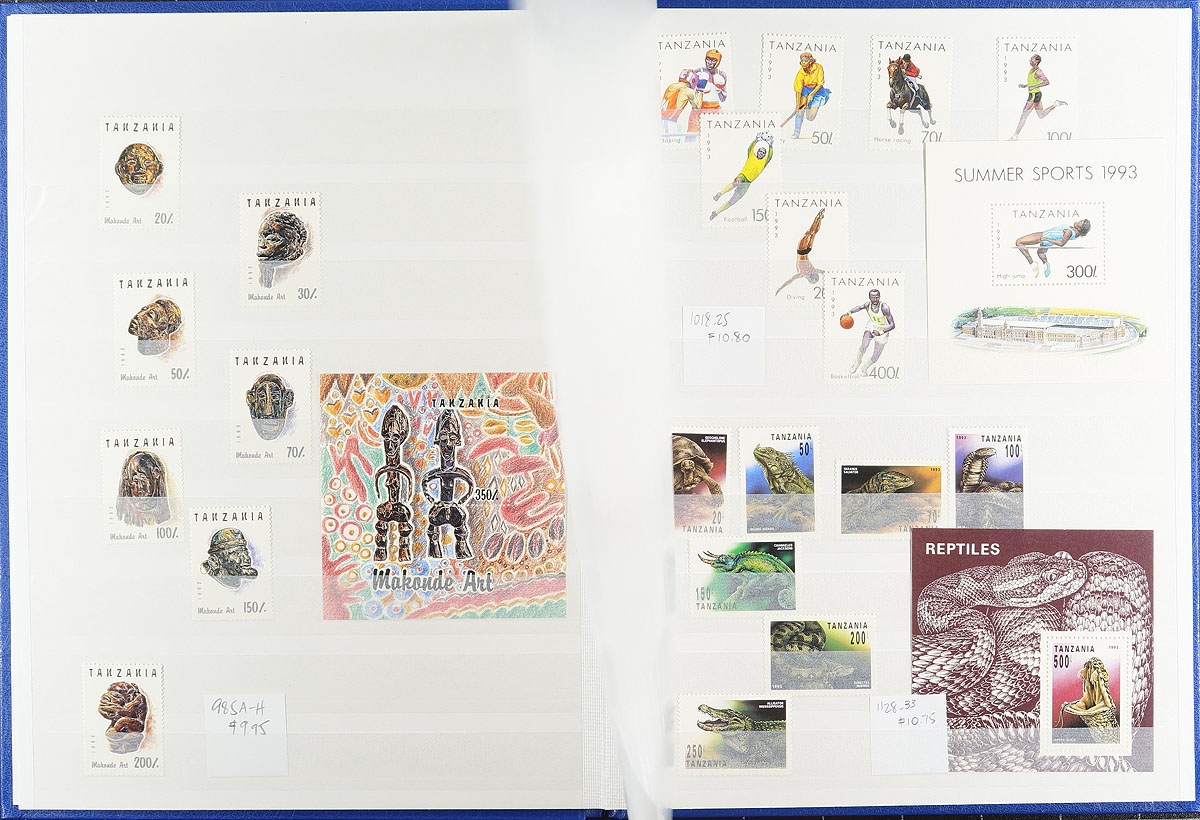 Estate balance #2. A bit from many different colonies, with strength from Asia and Africa. In order of appearance, there is Hong Kong, Batum, Burma, North Borneo/Brunei Japanese occupation, Azad Hind India, Bechuanaland, Ghana (bit mounted collection (owner’s catalogue value US$544.00, Tangier Silver Wedding, Sierra Leone "Face of Mars" and ending with a 1991-1995 Tanzania assortment of sets and souvenir sheets with heavy topical appeal (cat US$177.00, in a brand new 16 page stockbook). Estimate =