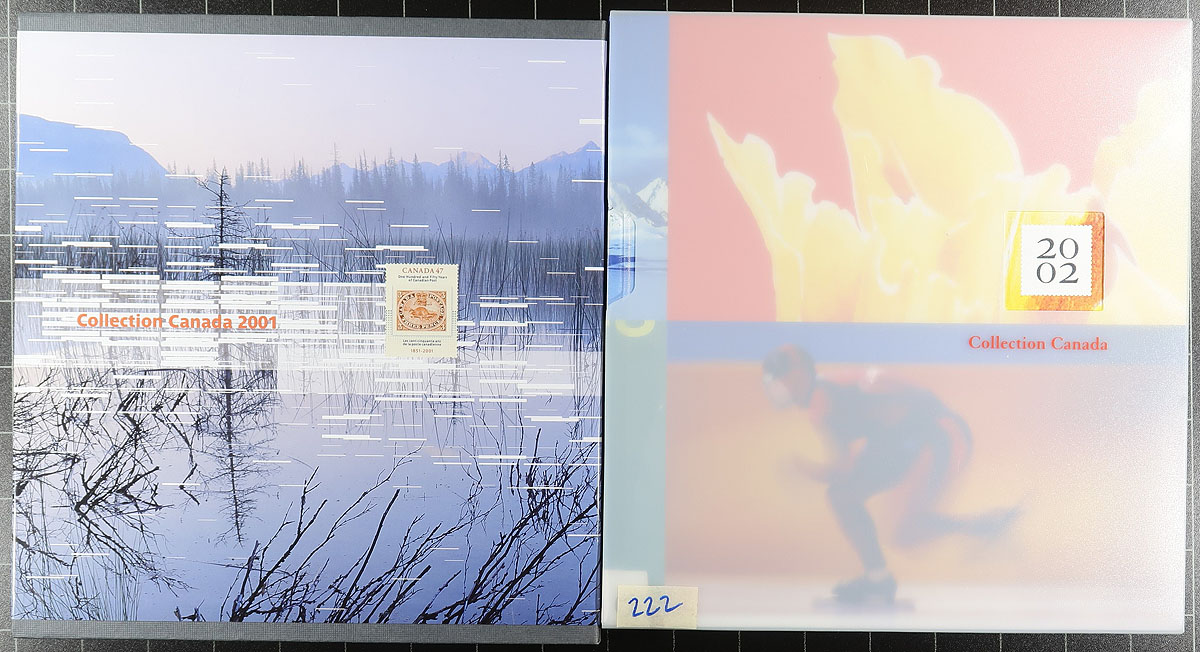 Box of Annual Collections a near-complete run from 1974-2004 plus a bonus of the "Millennium" collection. Yes, it has the good 1974 folder (unpunched) in far better condition than normally seen, but alas the collector put the stamps in poorly applied mounts. From that point, there is the 1977-1985, 1987-88, 1990-1994, 1996, 2000-2004 sets. Most have the stamps already in the mounts. Substantial original cost and over $350.00 face value. Estimate =