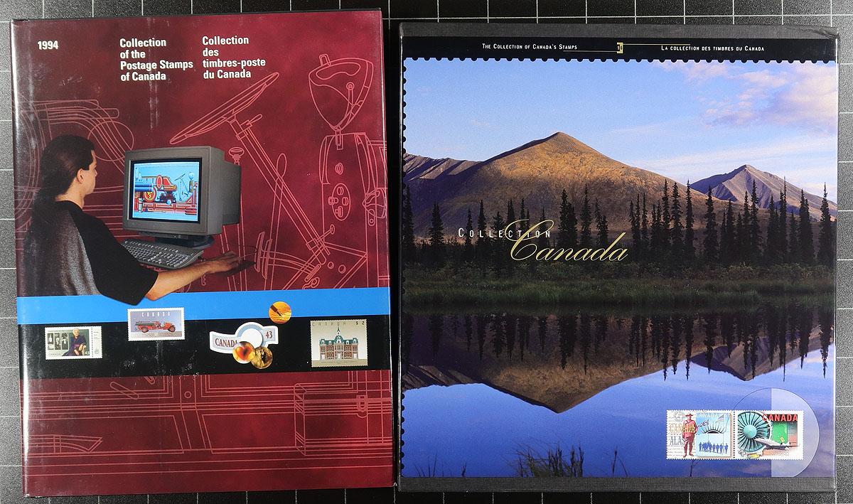 Box of Annual Collections a near-complete run from 1974-2004 plus a bonus of the "Millennium" collection. Yes, it has the good 1974 folder (unpunched) in far better condition than normally seen, but alas the collector put the stamps in poorly applied mounts. From that point, there is the 1977-1985, 1987-88, 1990-1994, 1996, 2000-2004 sets. Most have the stamps already in the mounts. Substantial original cost and over $350.00 face value. Estimate =