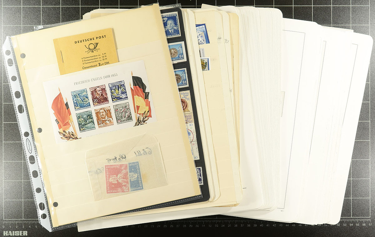 Hodge and Podge are both here in this estate lot. The largest component is a series of Lighthouse hingeless pages (1949-1959, list price $257.00, 1968-71 and 1982-1985), plus some Lindner pages from 1977-1978 (all of which have stamps throughout, including some better). There are also several stockpages with souvenir sheets, sheetlets and a selection of mint and used singles. Estimate =