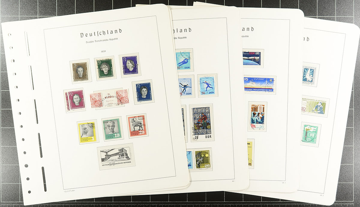 Hodge and Podge are both here in this estate lot. The largest component is a series of Lighthouse hingeless pages (1949-1959, list price $257.00, 1968-71 and 1982-1985), plus some Lindner pages from 1977-1978 (all of which have stamps throughout, including some better). There are also several stockpages with souvenir sheets, sheetlets and a selection of mint and used singles. Estimate =