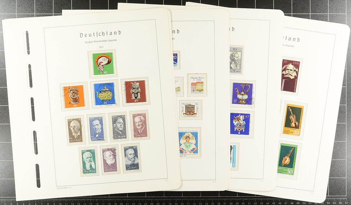 Hodge and Podge are both here in this estate lot. The largest component is a series of Lighthouse hingeless pages (1949-1959, list price $257.00, 1968-71 and 1982-1985), plus some Lindner pages from 1977-1978 (all of which have stamps throughout, including some better). There are also several stockpages with souvenir sheets, sheetlets and a selection of mint and used singles. Estimate =