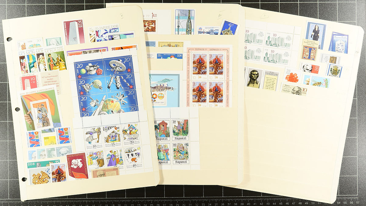 Hodge and Podge are both here in this estate lot. The largest component is a series of Lighthouse hingeless pages (1949-1959, list price $257.00, 1968-71 and 1982-1985), plus some Lindner pages from 1977-1978 (all of which have stamps throughout, including some better). There are also several stockpages with souvenir sheets, sheetlets and a selection of mint and used singles. Estimate =