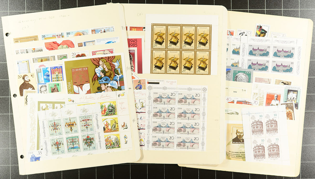 Hodge and Podge are both here in this estate lot. The largest component is a series of Lighthouse hingeless pages (1949-1959, list price $257.00, 1968-71 and 1982-1985), plus some Lindner pages from 1977-1978 (all of which have stamps throughout, including some better). There are also several stockpages with souvenir sheets, sheetlets and a selection of mint and used singles. Estimate =