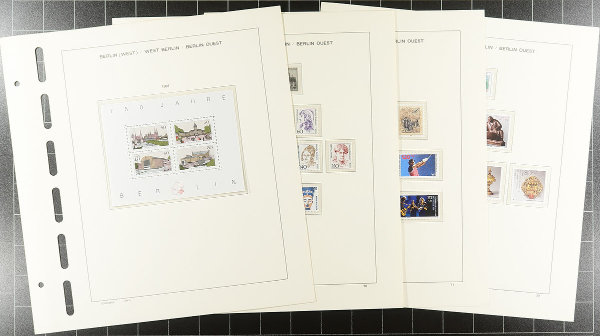 A big handful of album and stockpages of 20th century Germany. Some mint, some used, with material ranging from specialized to general. There is a group of Schaubek hingeless album pages for Berlin (1948-1954 and 1985-1990) and a Lighthouse section with pages for 1975-1982 (pages retail for $73.00, plus 336 stamps). Another couple of hundred stamps can be found in a post-WWII "French Zone" collection on Lighthouse hingeless pages (pages retail for $133.00). Then you get into two accumulations (one 1880's-1940's, other 1945-1980 and a page of mint 1952-1956). Value and fun in equal parts here. Estimate =