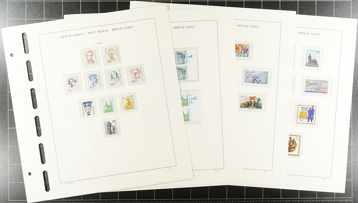 A big handful of album and stockpages of 20th century Germany. Some mint, some used, with material ranging from specialized to general. There is a group of Schaubek hingeless album pages for Berlin (1948-1954 and 1985-1990) and a Lighthouse section with pages for 1975-1982 (pages retail for $73.00, plus 336 stamps). Another couple of hundred stamps can be found in a post-WWII "French Zone" collection on Lighthouse hingeless pages (pages retail for $133.00). Then you get into two accumulations (one 1880's-1940's, other 1945-1980 and a page of mint 1952-1956). Value and fun in equal parts here. Estimate =